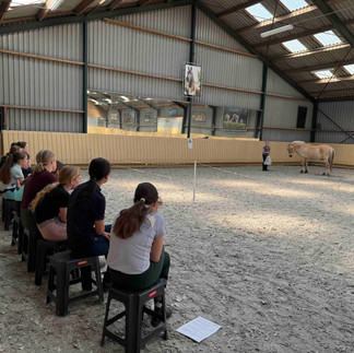 Na een gezamenlijke lunch doken we in het onderwerp ‘Type paard’: hoe herken je verschillende karakters en wat past daarbij in de omgang en training? De theorie werd meteen praktisch toegepast in de paddock, waar we paarden observeerden en leerden 'lezen'.